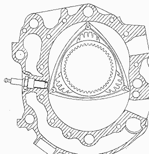 Die Exzenterwelle des Wankelmotors dreht sich dreimal so schnell wie der